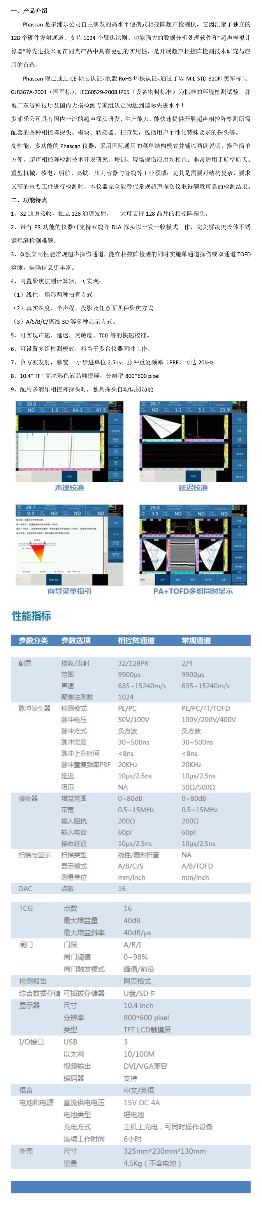 Phascan是多浦樂公司自主研發(fā)的高水平便攜式相控陣超聲檢測儀,它因匯聚了獨立的128個硬件發(fā)射通道、支持1024個聚焦法則、功能強大的數(shù)據(jù)分析處理軟件和“超聲模擬計算器”等先進(jìn)技術(shù)而在同類產(chǎn)品中具有更強的實用性,是開展超聲相控陣檢測技術(shù)研究與應(yīng)用的首選。